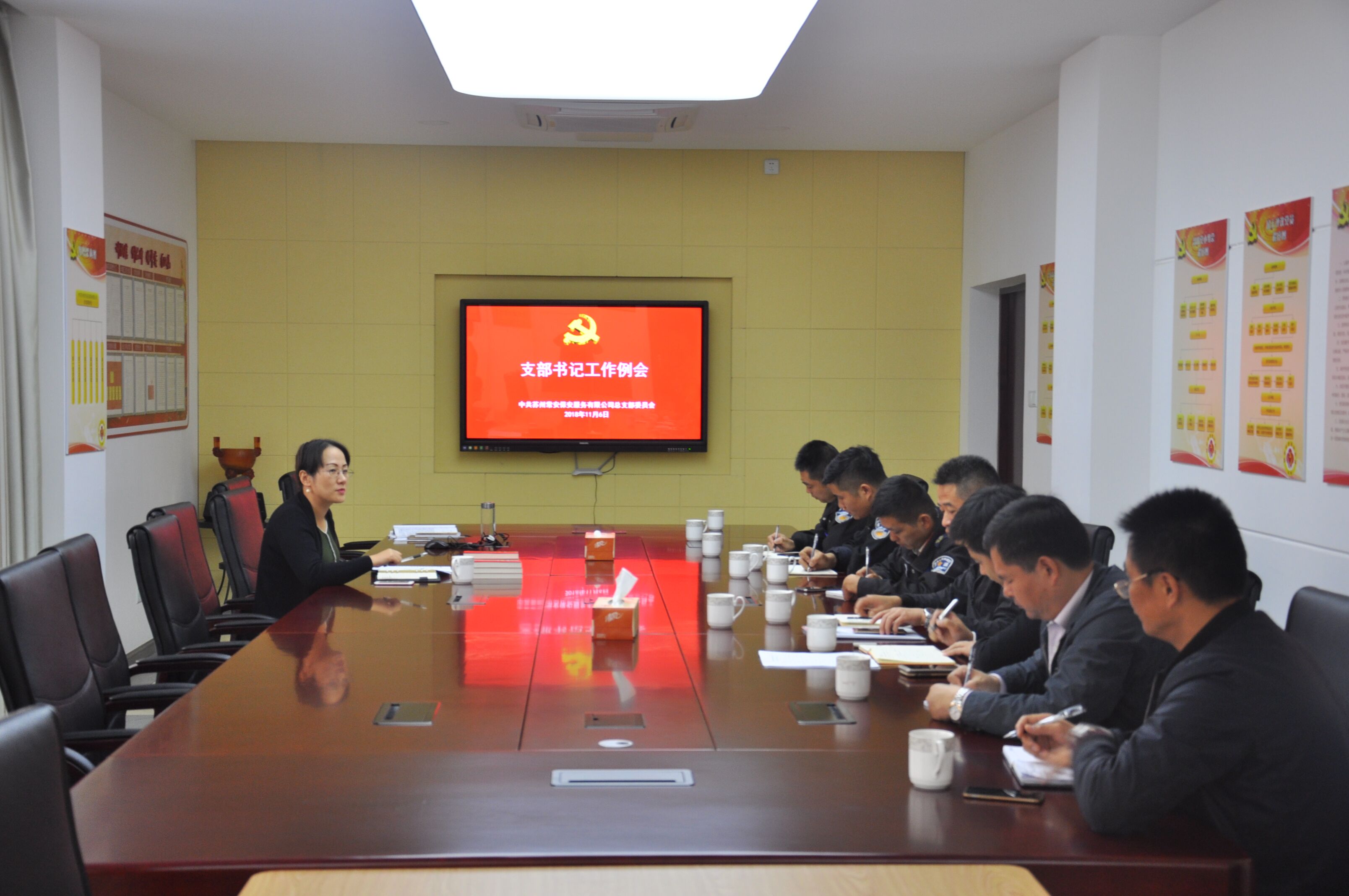調(diào)整后的七位黨支部書記聽取王書記關(guān)于公司黨建工作現(xiàn)狀分析,王書記還分發(fā)了《發(fā)展黨員工作務(wù)實手冊》,希望各支部書記要站在政治大局的高度上,加強政治理論學(xué)習(xí),提高思想境界,努力提高黨務(wù)工作能力,帶好支部黨員隊伍建設(shè)。黨政辦副主任李東明通過現(xiàn)場播放《基層支部常規(guī)工作介紹》PPT,從組織生活、臺賬建設(shè)、黨員管理三方面講解具體做法,明晰支部組織工作思路。